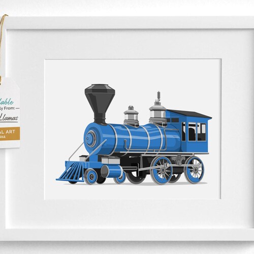 Boys Vintage Train Wall Art Print Blue Or Pick Your Own Etsy